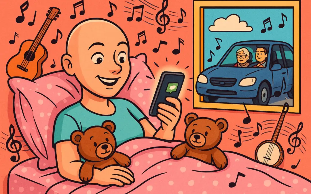 V autě každý z nás vyfasuje řízek s chlebem, který je pro mě neskutečným bonusem celého večera. V tu chvíli jsem pochopila, že jsem si nevybrala jen správný koncert, ale i tu pravou výpravu. Jestli existuje něco jako hudební nebe, podává se tam řízek. Jsem šťastná za tyhle chvíle a děkuju Martinovi a jeho mamince za nápad mi napsat. Stačí vteřina života a vše může být jinak. Nejen v tom zlém, ale taky v tom dobrém. Možná, že sami netuší, kolik štěstí mi dali.